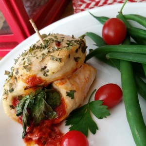 Consider Incorporating some greens: Add sautéed spinach (liquid removed) before rolling up the chicken.