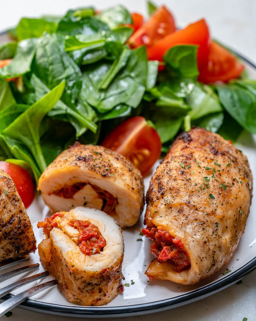 Serve with roasted green beans! Consider incorporating some greens: Add a few pieces of fresh spinach or kale before rolling up the chicken.