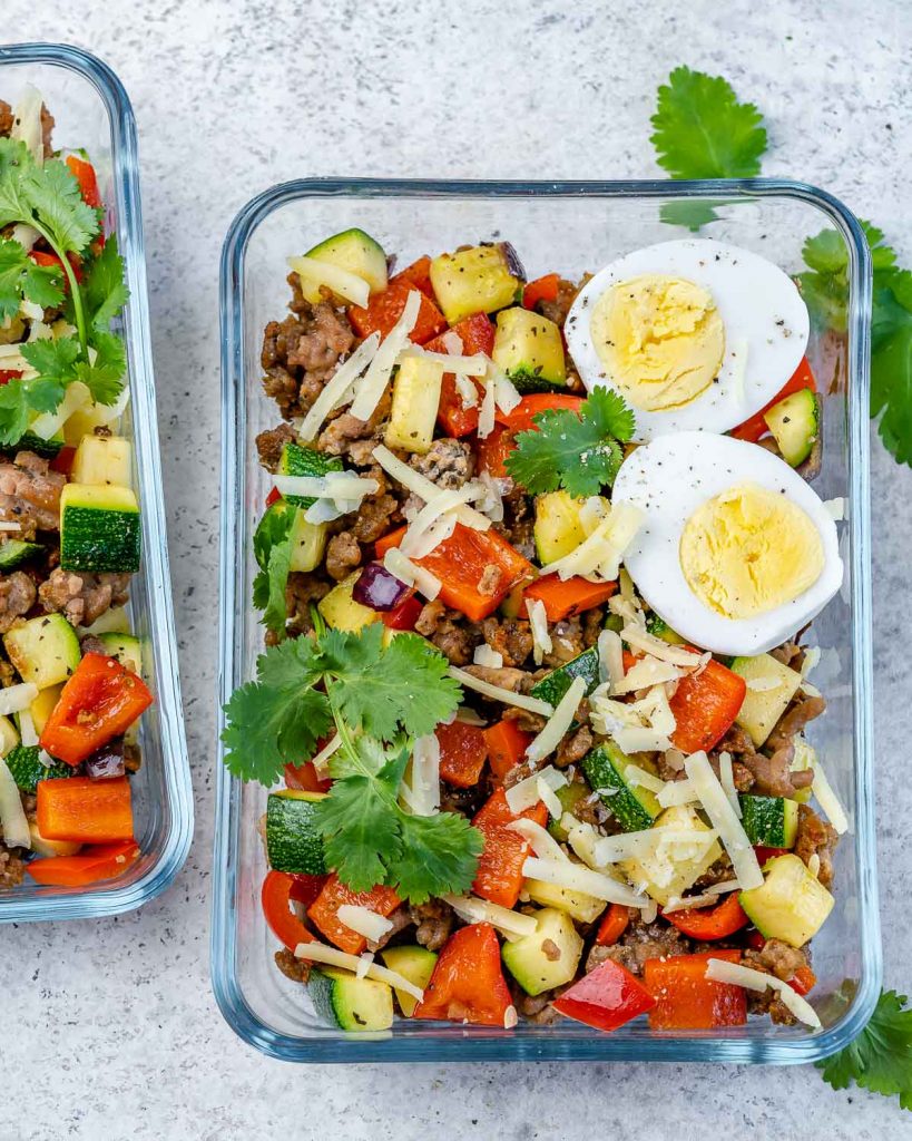- Divide equally among meal prep containers then add a hard-boiled egg in each if desired.