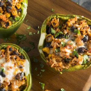 Turkey + Rice Fiesta Stuffed Bell Peppers
