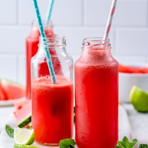 Serve your cold watermelon lemonade immediately or refrigerate for later on. Stays good for about 24 hours in the fridge. Give it a stir before serving.