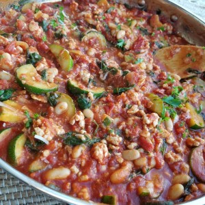 This is a flavorful, traditional cold weather chili that I add zucchini & spinach (or anything I have on hand – throw it in!), for the nutrition.
