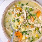 Add this slurry to the pot, together with the rest of the bone broth, potatoes, and cooked chicken. Allow it to come to a brisk boil, then reduce the heat to a simmer.