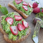 Grinch Toast – Ezekiel Bread with Avocado, Strawberries, & Chia Seeds