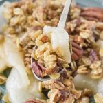 Sprinkle your pears with your topping mixture, spreading it evenly.