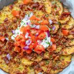 Once the potatoes are done, carefully remove from the oven and transfer to a skillet or oven-safe dish. I covered mine with parchment for easy clean up!