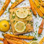 Using your clean hands rub the salmon all over to coat well. Top your salmon with lemon slices.