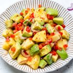 Carefully slice the ends off of your pineapple, then peel and halve lengthwise into quarters. Carefully remove the core from each quarter, as shown in the video, then chop each quarter crosswise into bite sized pieces.