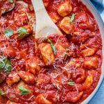 Serve over cooked brown rice or quinoa then topped with freshly grated parmesan cheese and fresh basil if desired.