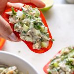 Spoon your tuna salad into the bell pepper halves and serve immediately.