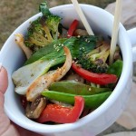 Allow to cook for 30-seconds. Remove the wok from the heat and stir garlic and ginger mixture in with the vegetables.